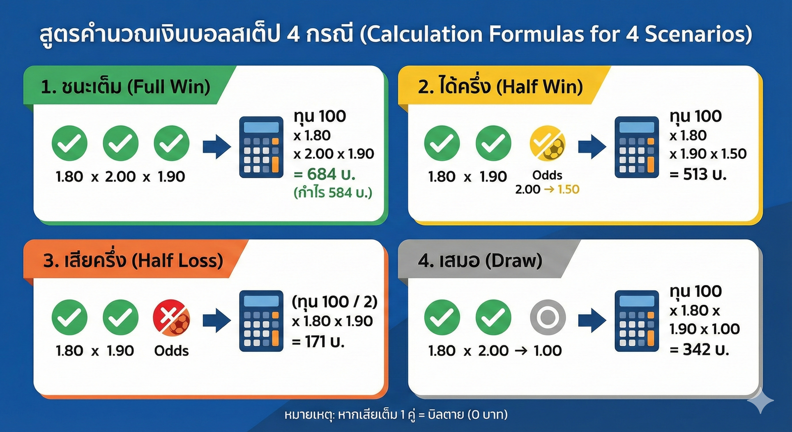 วิธีคิดเงินบอลสเต็ป แบบละเอียด (Step-by-Step Calculation)